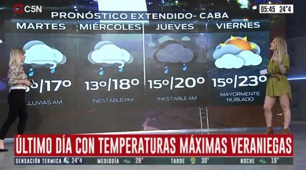 En las primeras horas del día, el SMN emitió un alerta meteorológico por tormentas fuertes para el Norte y centro-este de la provincia de Buenos Aires, Sur y centro de Córdoba, Sur de Entre Ríos, Noreste de San Luis, Sur y centro de Santa Fe, Ciudad Autónoma de Buenos Aires y Rio de la Plata. El mismo dice que "pueden desarrollarse lluvias y tormentas sobre el área de cobertura, pudiendo ser algunas localmente fuertes. Las mismas podrían estar acompañadas de fuerte actividad eléctrica, abundante caída de agua en cortos períodos, ráfagas intensas y caída de granizo".