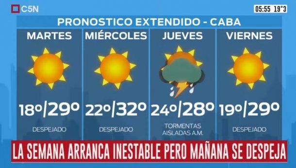 Para el martes, en tanto, está pronosticado cielo despejado y una temperatura que rondará los 18 grados de mínima y los 29 de máxima.