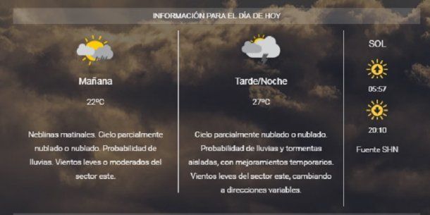 Según el Servicio Meteorológico Nacional mañana miércoles volvería el sol. La mínima estará en los 20° y la máxima podría superar los 30°.