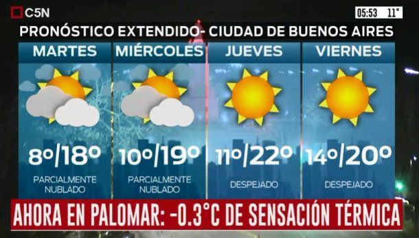 En tanto, el miércoles está pronosticado cielo parcialmente nublado, vientos del sector sureste rotando al este y la temperatura rondará entre una mínima de 10 grados y una máxima de 19.