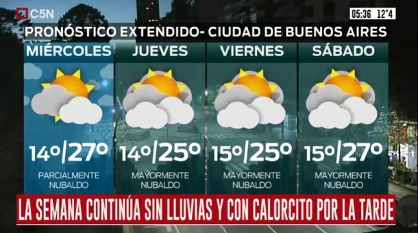 El Servicio Meteorológico Nacional (SMN) anticipa para este miércoles en la Ciudad de Buenos Aires y el Conurbano una jornada casi veraniega, con una temperatura máxima pronosticada de 27 grados luego de una mañana fresca.
