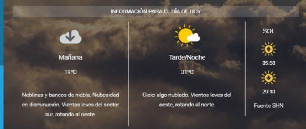Según el Servicio Meteorológico Nacional pronosticó una temperatura entre los 19° y los 31°.