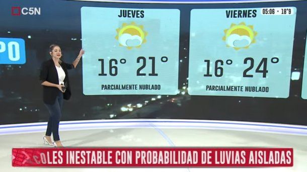 Se espera tiempo inestable y lluvias durante buena parte de la jornada, con el clima mejorando hacia la noche. La máxima pronosticada es de 23 grados.