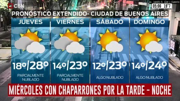 En tanto, el jueves está pronosticado cielo parcialmente nublado, vientos del sector sur rotando al sudoeste, y con una temperatura que estará entre una mínima de 18 grados y una máxima de 28.