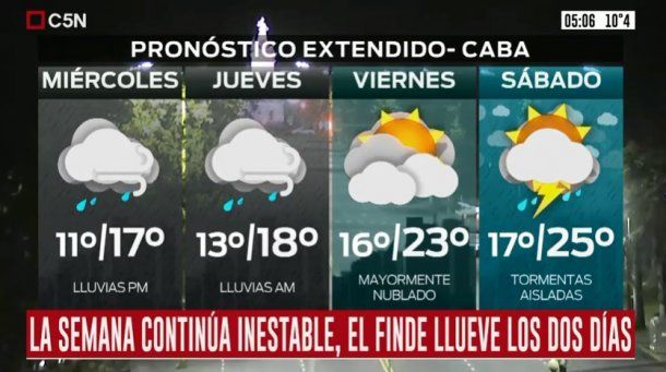 El Servicio Meteorológico Nacional (SMN) anticipa para este miércoles en la Ciudad y el Conurbano otra jornada inestable, con un comienzo mayormente nublado y las condiciones climáticas empeorando en la segunda mitad del día, donde habrá chances de chaparrones.