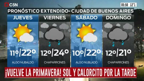 El Servicio Meteorológico Nacional (SMN) anticipa para este miércoles en la Ciudad de Buenos Aires y el Conurbano una muy agradable jornada, con un arranque fresco y una tarde primaveral con pocas nubes y una máxima de 25 grados.