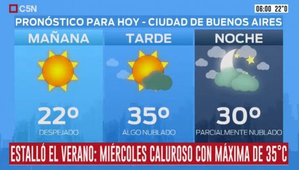 El Servicio Meteorológico Nacional (SMN) prevé para este miércoles una jornada a puro sol, con una mañana agradable y una tarde muy calurosa en la Ciudad de Buenos Aires y el Conurbano.