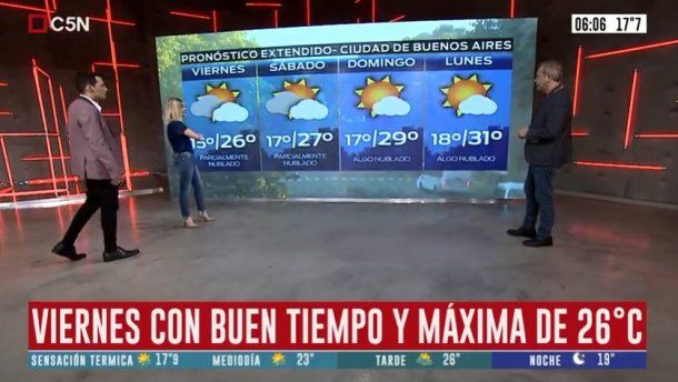 En tanto, el sábado la tendencia se mantendrá prácticamente igual, con cielo algo a parcialmente nublado, vientos del noreste cambiando al este y marcas térmicas que oscilarán entre los 16 y los 27 grados.