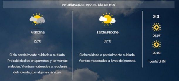 El viernes se presentaría nublado con probabilidad de chaparrones y tormentas aisladas, según el parte del Servicio Meteorológico Nacional.