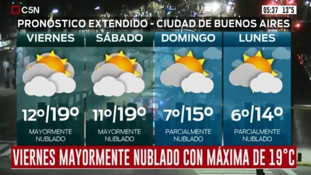 El Servicio Meteorológico Nacional (SMN) anticipa para este viernes en la Ciudad de Buenos Aires y el Conurbano una jornada con abundante nubosidad aunque en principio sin chances de precipitaciones.