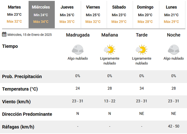 En tanto, el jueves podría ser el peor días para los detractores del calor: con una posible máxima de 35 grados, lo ideal será no salir a la calle. El cielo nuevamente estará ligeramente nublado, con viento soplando del Norte y virando hacia el Este por la noche.