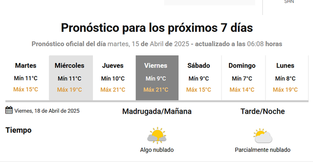 El Servicio Meteorológico Nacional prevé un Jueves Santo con cielo mayormente nublado, una mínima de 13 grados y una máxima de 23..