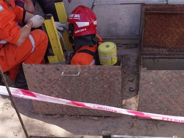 Un cuarto operario logró ser rescatado con vida. Personal de Bomberos Voluntarios, el Servicio Médico y las empresas Econovo y Scorza trabajaron para drenar el agua del interior del pozo.