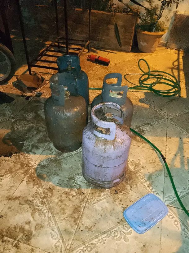 Tras extinguir el incendio, los bomberos descubrieron que hubo una falla en una de las mangueras y que esa fuga de gas entró en contacto con una fuente de calor, que a su vez provocó el efecto soplete en las otras garrafas.
