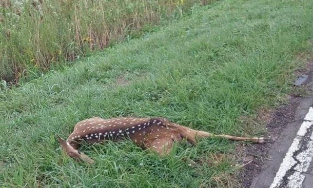Los Bomberos Voluntarios de la zona recibieron un pedido desesperado de auxilio por un accidente vial ocurrido sobre la Ruta 12. Al llegar al lugar se encontraron con un automóvil Fiat Siena envuelto en llamas, un animal muerto sobre el asfalto y otros varios en cercanías del lugar del accidente. La familia estaba desesperada presa de un ataque de nervios. El conductor relató que había chocado contra varios ciervos que, según aseguró, "salieron de la nada". A causa del impacto uno de los animales murió.