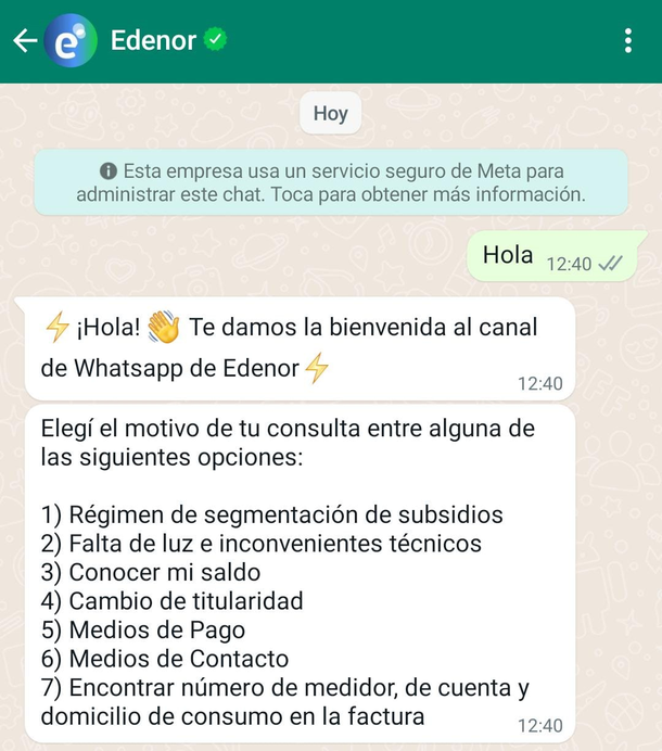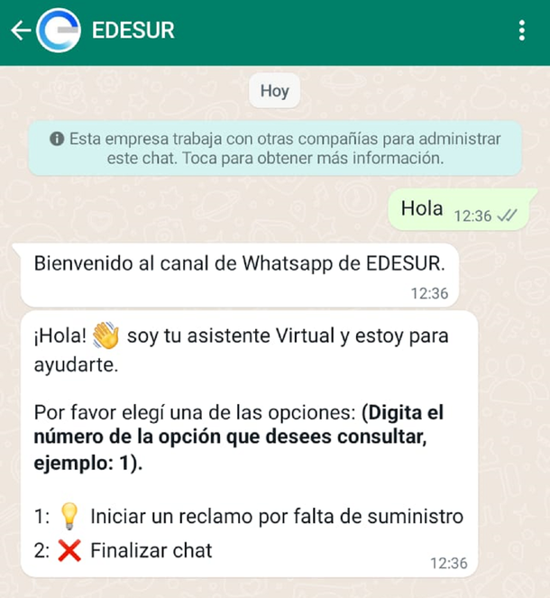 A través de WhatsApp, podés interactuar con un chatbot que responde de forma inmediata tanto a usuarios de Edesur como Edenor.