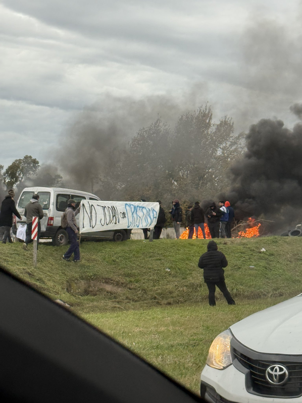 La protesta fue convocada por el Frente Social y Productivo Néstor Kirchner y la Agrupación Evita y Unidad Popular. Comenzó durante la tarde de este lunes y, según informaron desde el Destacamento Vial de la Autopista, y se extendió hasta entrada la noche, cuando fue levantada.