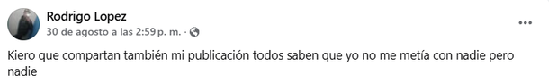Horas antes de quitarse la vida, el joven no dejó de insistir en que él no era culpable por el crimen de Candela: “Quiero que compartan mi publicación también. Todos saben que yo no me metía con nadie, pero nadie”.