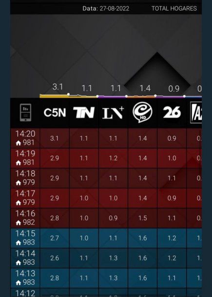 Por momentos la señal de noticias C5N se ubica en el tercer lugar de la grilla general de canales en el rating, incluidos los de aire, ganando cómodamente en su segmento.