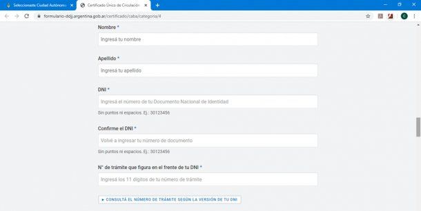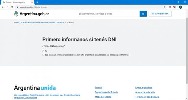 Luego, debemos informar si tenemos o DNI argentino. Las personas que no tengan DNI argentino sólo podrán tramitar el permiso si tienen residencia precaria en trámite.