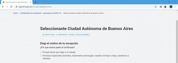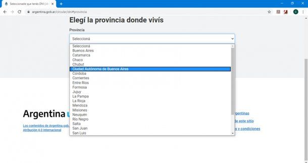 A continuación, el aplicativo derivará a una sección en la que debemos seleccionar la provincia argentina en la que residimos.