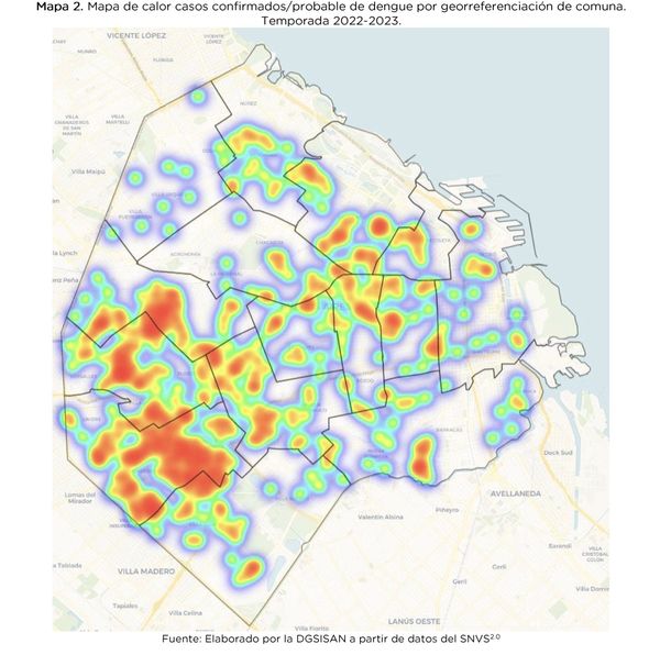 Según el último boletín de la Ciudad de Buenos Aires, entre julio de 2022 y el pasado 26 de marzo (semana 12 de 2023) se confirmaron por prueba 1.166 casos de dengue, de los cuales el 42% estaban en la comuna 9 integrada por los barrios de Parque Avellaneda, Liniers y Mataderos.