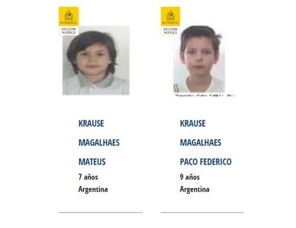 La Justicia solicitó a la Interpol que colabore con la búsqueda y de este modo activaron un alerta amarilla para hallar a Mateus Magalhanes Krause, de 7 años; y a Paco Federico Magalhanes Krause, de 10.