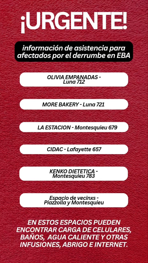 La lista de los comercios solidarios que asisten a los afectados por el derrumbe