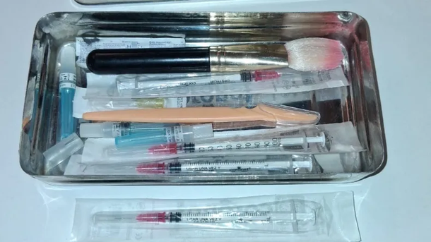 En sus publicaciones de redes sociales, la falsa médica aseguraba que hacía “armonización facial”, y compartía fotos ilustradas con la imagen de dos manos realizando prácticas con inyecciones en los labios de una mujer.