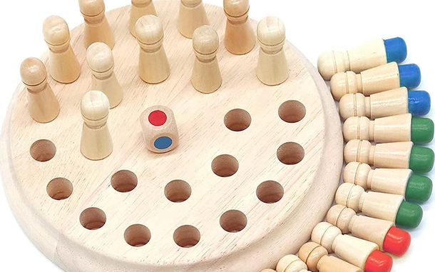 El Memory Chess sirve para el desarrollo de la memoria a la manera del conocido Memotest. Es de madera con temática de animales, y trae varias plantillas para variar el juego.