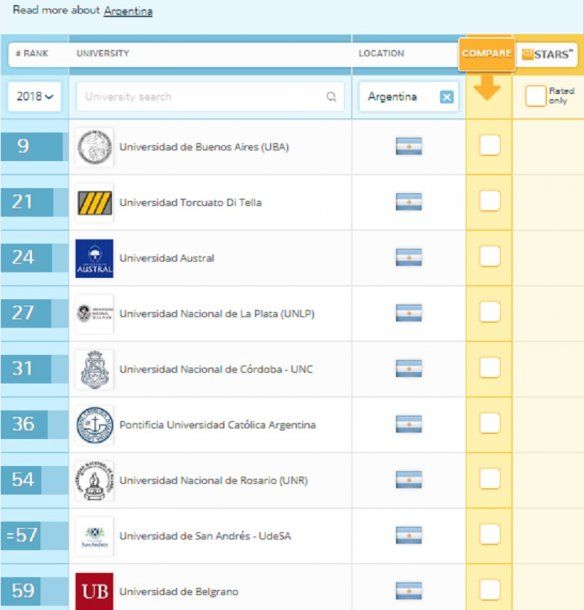 Una de las instituciones más destacadas fue la Universidad Torcuato Di Tella, de gran incremento, que escaló hasta el puesto 21. La Universidad Austral se mantuvo en la posición 24, mientras que la Universidad Nacional de la Plata, una de las mejor consideradas, quedó número 27, pese a su descenso de siete lugares.
