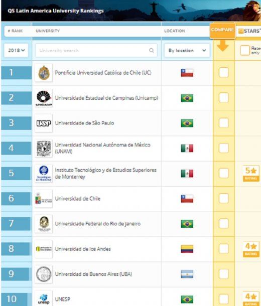 Es la primera vez que una universidad argentina entra en el podio de las mejores de la región. Se ubica en el puesto 9.