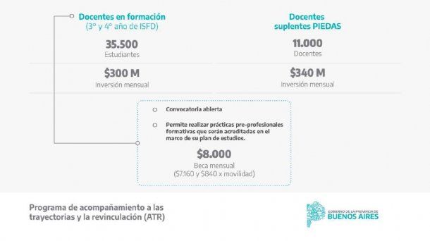 Los docentes en formación que participen del programa tendrán la posibilidad de acreditar la actividad como una práctica formativa dentro de su plan de estudios y además percibirán una beca de contraprestación para el acompañamiento de las trayectorias educativas de $8.000 mensuales.