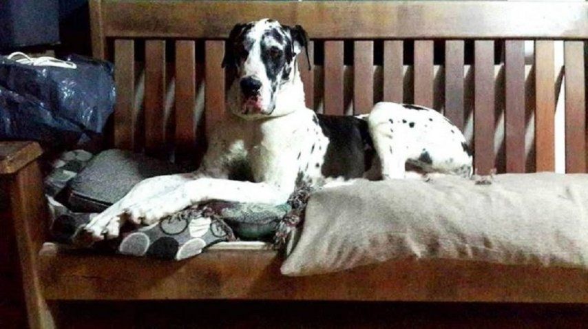 Alejandro Zanola volvía de Brasil en su camioneta cuando el destino lo cruzó con un Gran Danés herido y golpeado, al que decidió rescatar. Pero pese al deseo de tenerlo con él no lo puede hacer porque vive en un departamento y no posee el espacio adecuado que el animal necesita.