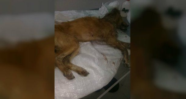 Los rescatistas creen que alguien le ató las patas al perro para que no lo siguiera cuando lo abandonaban. El animal fue encontrado deshidratado y al borde de la desnutrición cerca de San José de Feliciano.