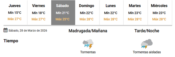 Con ausencia de lluvias en el día sábado, las tormentas volverán el domingo, según el sitio.