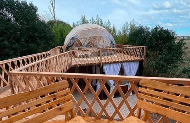 En este contexto, el glamping es una propuesta innovadora que ofrece diversos tipos de domos, algunos de los cuales están suspendidos sobre estructuras de madera, brindando la oportunidad de conectarse plenamente con la naturaleza. El lugar te permite disfrutar de momentos de tranquilidad y silencio, ofreciendo una experiencia en la que puedes desconectar por completo de la rutina de la ciudad y del estrés tecnológico que a menudo nos afecta.