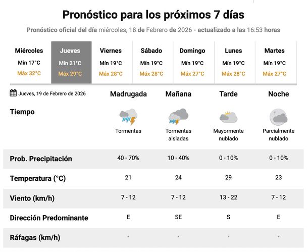 En cuanto al cierre de la semana, los pronosticadores prevén buen tiempo. El viernes, según el SMN, tendría cielo parcialmente nublado, con temperaturas que oscilarán entre 19 y 28 grados.