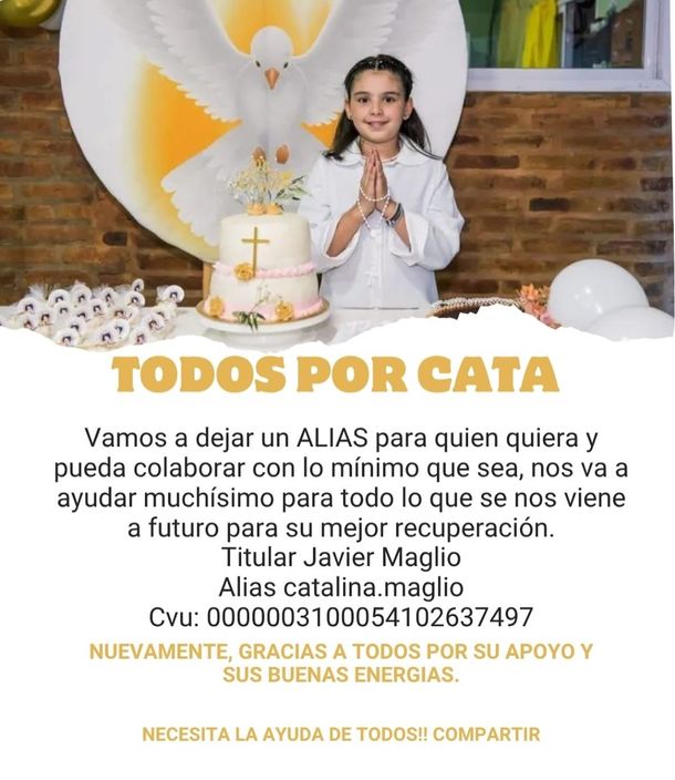 “Cada granito de arena será de gran ayuda para afrontar lo que se viene y acompañar a Cata en su recuperación”, expresaron.