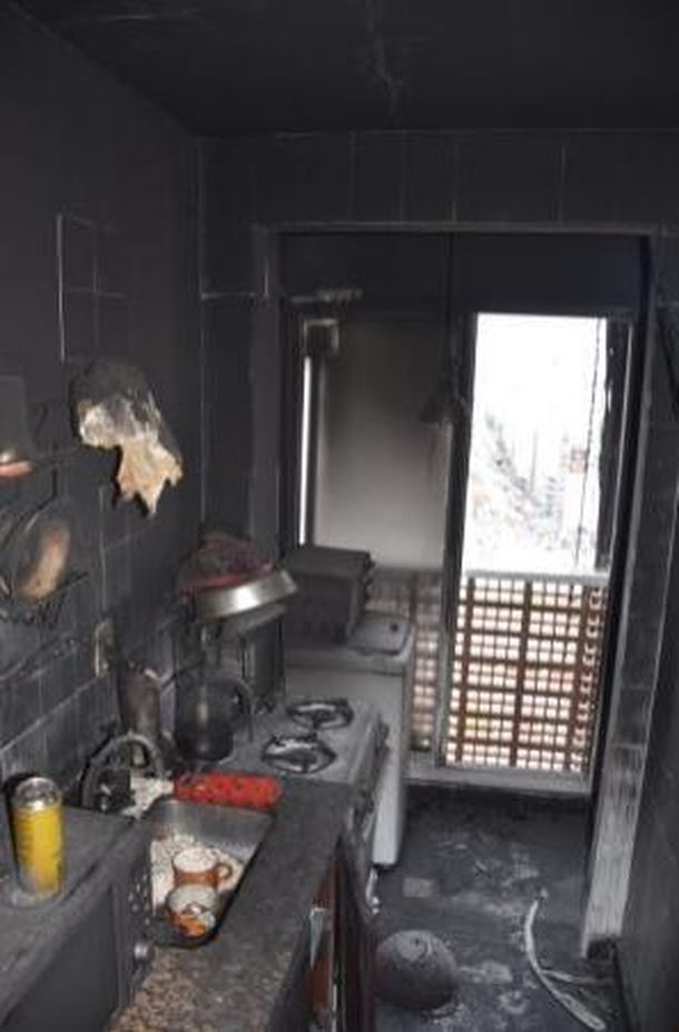 Las imágenes son realmente impactantes y se puede ver a todos los ambientes cubiertos de hollín: paredes totalmente negras, electrodomésticos quemados, y la estructura de lo que fue un sillón, entre otros detalles.