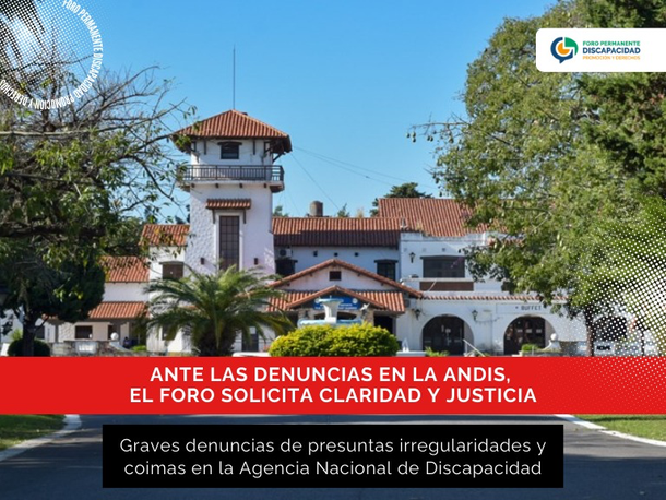 Foro Permanente Discapacidad exige "claridad y justicia" tras las denuncias de presuntas coimas en ANDIS