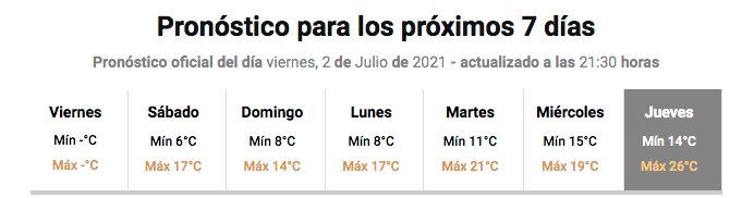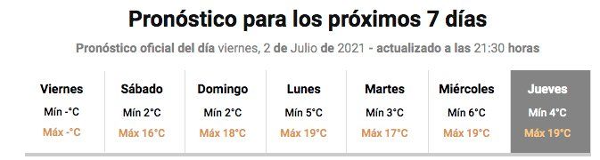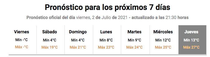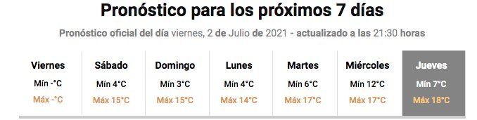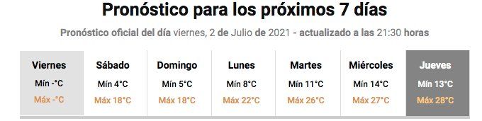En tanto, en la provincia de Córdoba desde el domingo las temperaturas máximas serán elevadas y para el jueves que viene se anuncia una máxima de 27 grados, en pleno invierno.