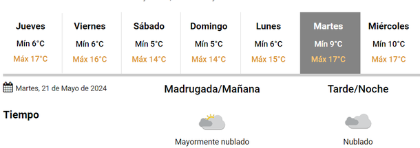De esta forma, este jueves se presenta con cielo parcialmente nublado, vientos leves del oeste y una temperatura que irá de los 5 a los 17 grados.