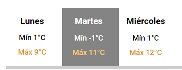 A partir del miércoles 19 de julio subirá la temperatura y la mínima dejará de ser bajo cero para llegar a los 9 grados y así ira creciendo en la semana.