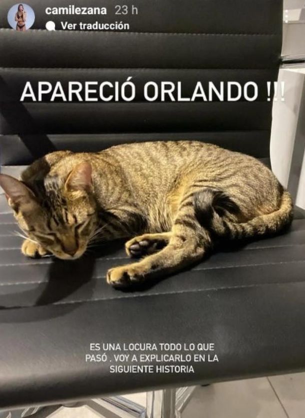 Luego de varios mensajes extorsivos en los que le pedían una suma de dinero a cambio de la devolución del gato, un número anónimo de WhatsApp se comunicó con Camila y le mandó una foto de Orlando.