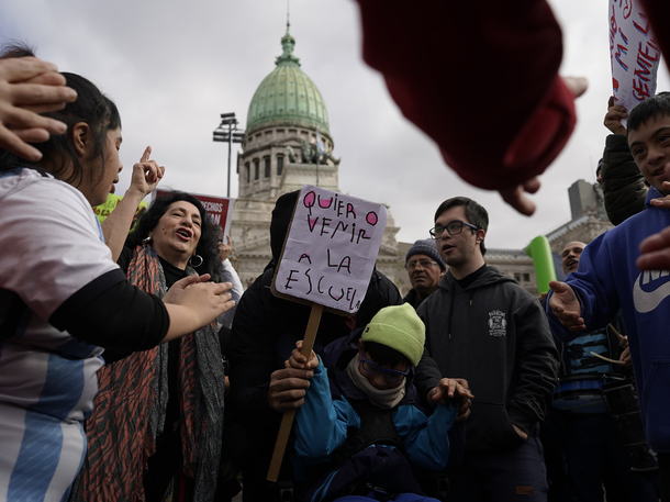 El presidente Javier Milei vetó la Ley de Emergencia en Discapacidad, lo que provocó que integrantes de distintas agrupaciones y familiares realizaran hoy una manifestación frente al Congreso de la Nación.