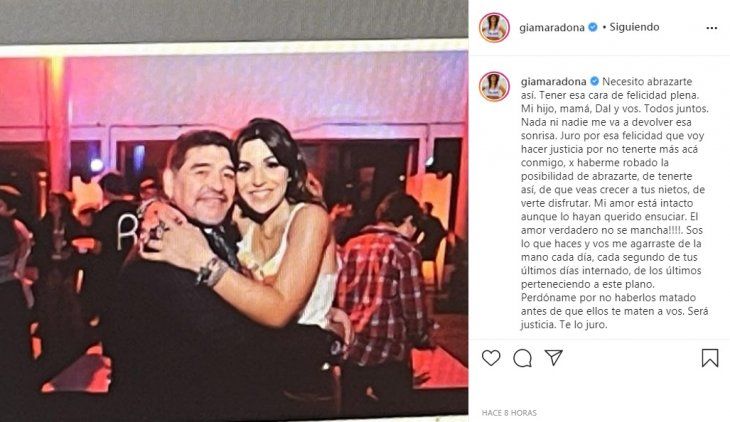 Desgarrador mensaje de Gianinna Maradona: "Será justicia, te lo juro"