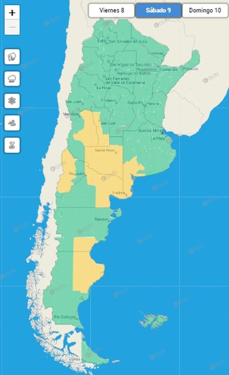 Las advertencias son para este sábado, y afectan a las provincias de Buenos Aires, Chaco, La Pampa y Río Negro.