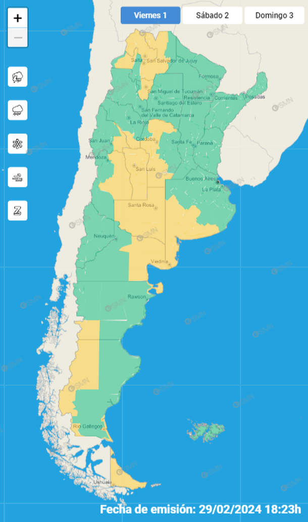 Se viene un viernes complicado en gran parte del país porque hay un total de 14 provincias bajo alerta amarillo por fuertes lluvias, con posible caída de granizo, según informó el Servicio Meteorológico Nacional (SMN).