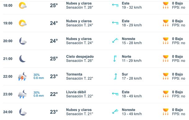 Según el portal Meteored, las tormentas podrían registrarse en el AMBA a partir de las 22 horas, tornándose "lluvia débil" para la medianoche.